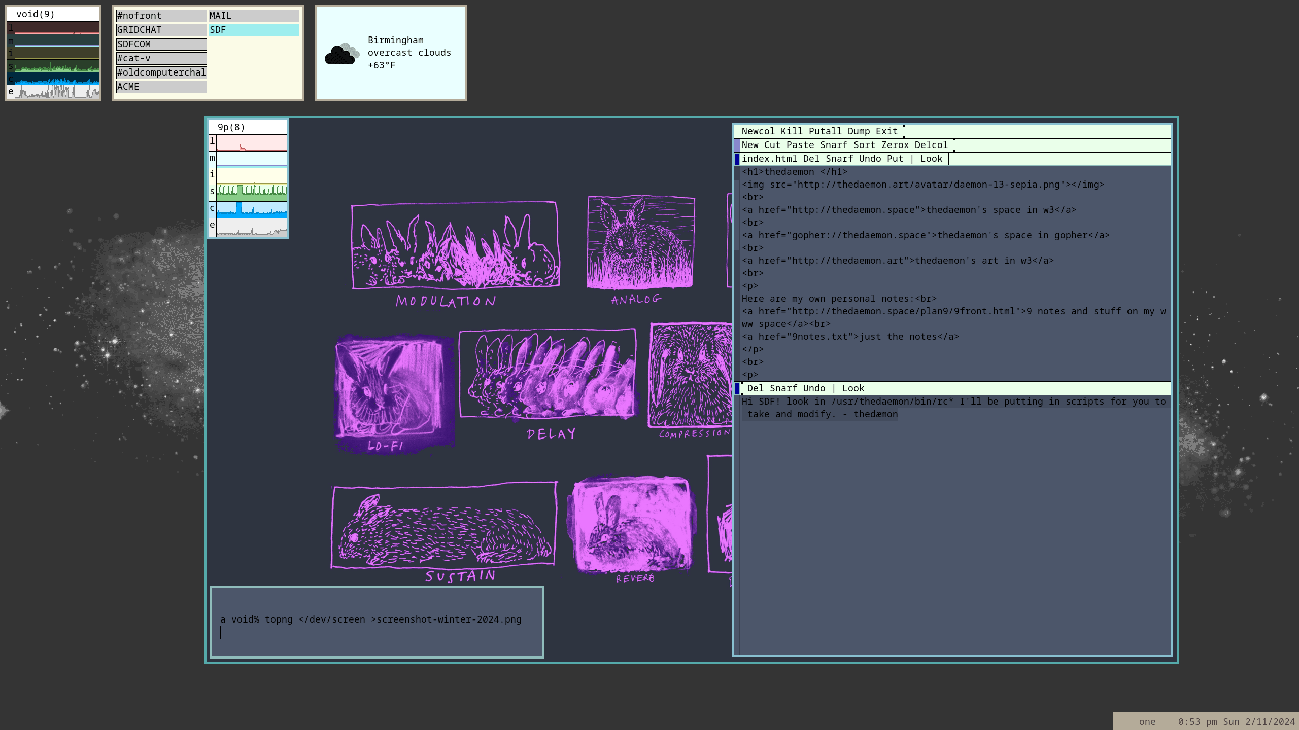 arrow-up11arrow-down1imageWinter 2024 SDF Plan 9 Bootcamp Entryplus-squarelemmy.sdf.orgthedæmon@lemmy.sdf.org to Plan9@lemmy.sdf.orgEnglish · 2 years agomessage-square0linkfedilink